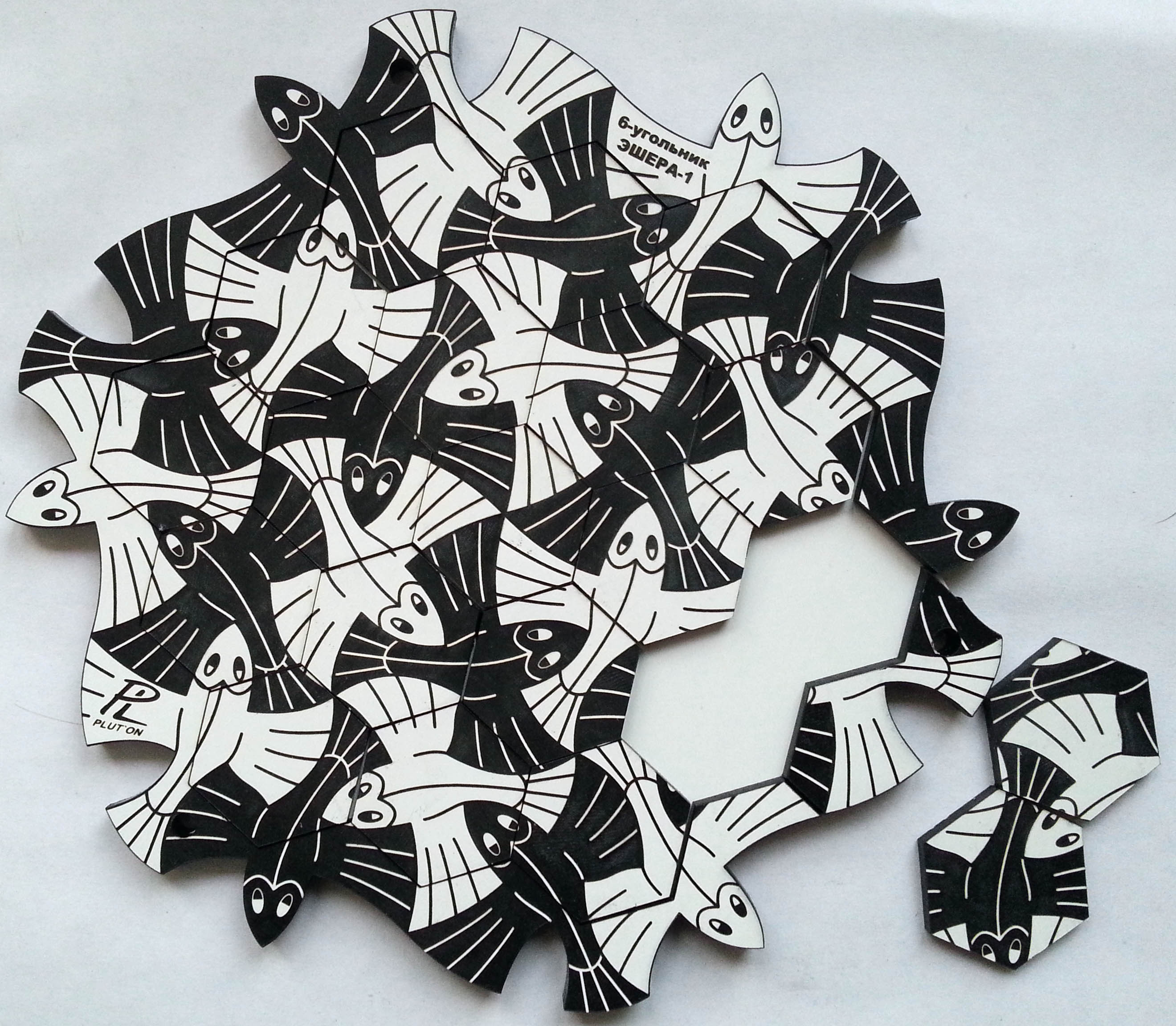 Для шестиугольника идеально подошли летучие рыбы, ещё пару мозаик уже отрисованы в кореле и тоже скоро будут воплощены в реальных головоломках.